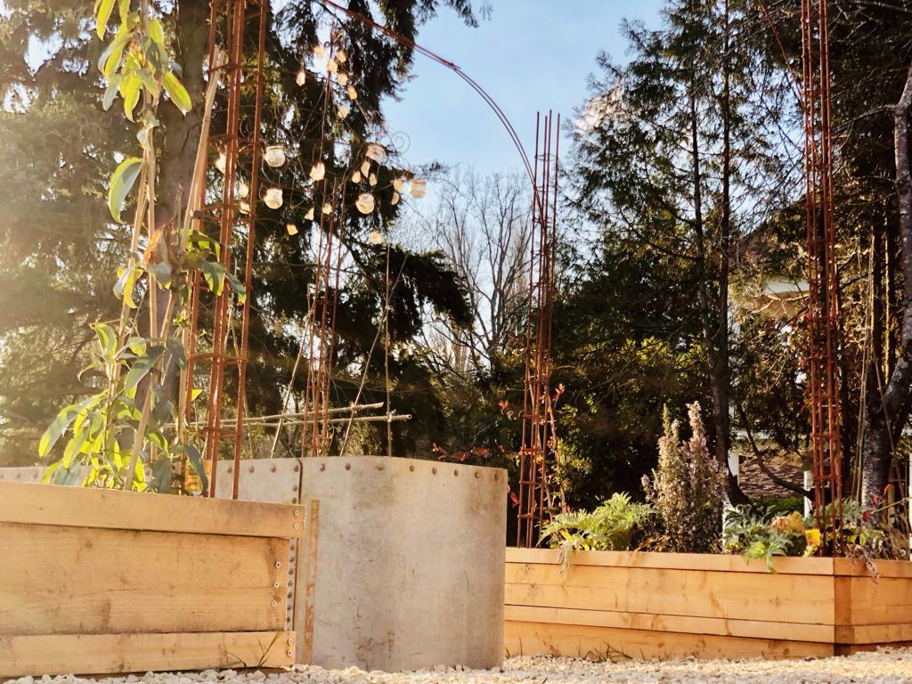 Que vous soyez un particulier, un professionnel, une entreprise ou une collectivité, l’aménagement de votre espace en jardin comestible vous permettra de combiner l’élégance et la fraicheur d’un jardin, tout en profitant de produits frais, biologiques, sur place. Tout espace extérieur peut jouer ce rôle de production locale : vous pouvez le placer sur un balcon, une terrasse ou un jardin. Nous vous proposons des concepts adaptés à l’espace que vous voulez. Nous vous accompagnons également sur le modèle de production désiré. Fruits, légumes, aromates, tisanes ou herbes médicinales, le champ des possibles est ouvert. Carrés potagers, pleine terre, bac et poterie votre potager peut prendre le style qui vous va bien. Agrémenté de structures végétales, d’accessoires, objets déco et luminaires profitez d’un espace harmonieux et stylé en plus d’être un modèle de jardin éco-responsable !
